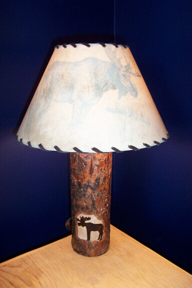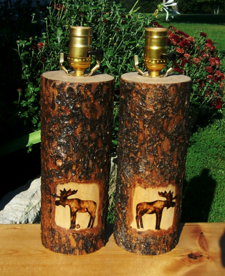 | Our Wood-Burned Table Lamps feature hand-woodburned designs on a solid log base. Choose between skip-peeled (see picture of Bear Lamp) or bark (pictured above). Each one is uniquely one-of-a-kind. Small size comes without a harp, Medium and Large sizes include a harp. They look great from bedroom to living room. Lampshade not included. Due to the rustic nature of log furniture, all dimensions are approximate. |